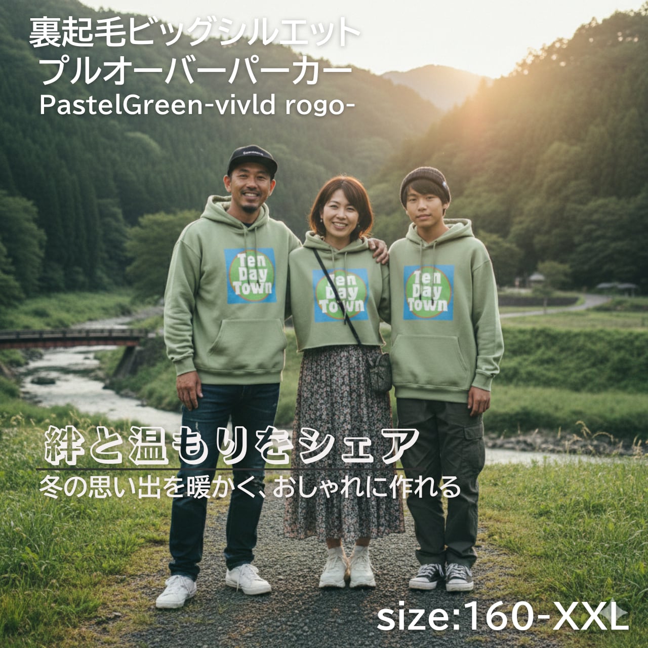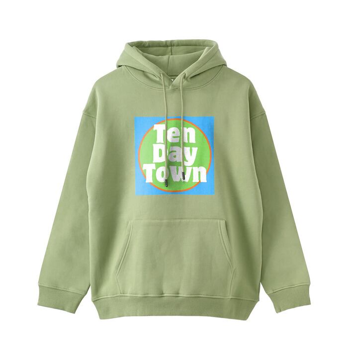 TDT【vividロゴプリント】裏起毛 ビックシルエットプルオーバーパーカー パステルグリーン