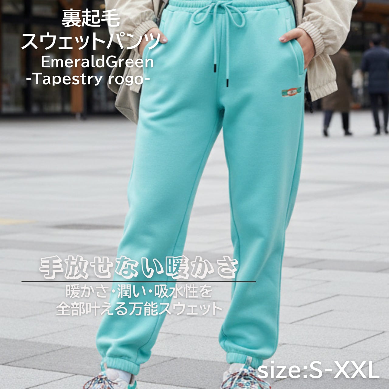 TDT【Tapestryロゴ刺繍】裏起毛 スウェットパンツ エメラルドグリーン