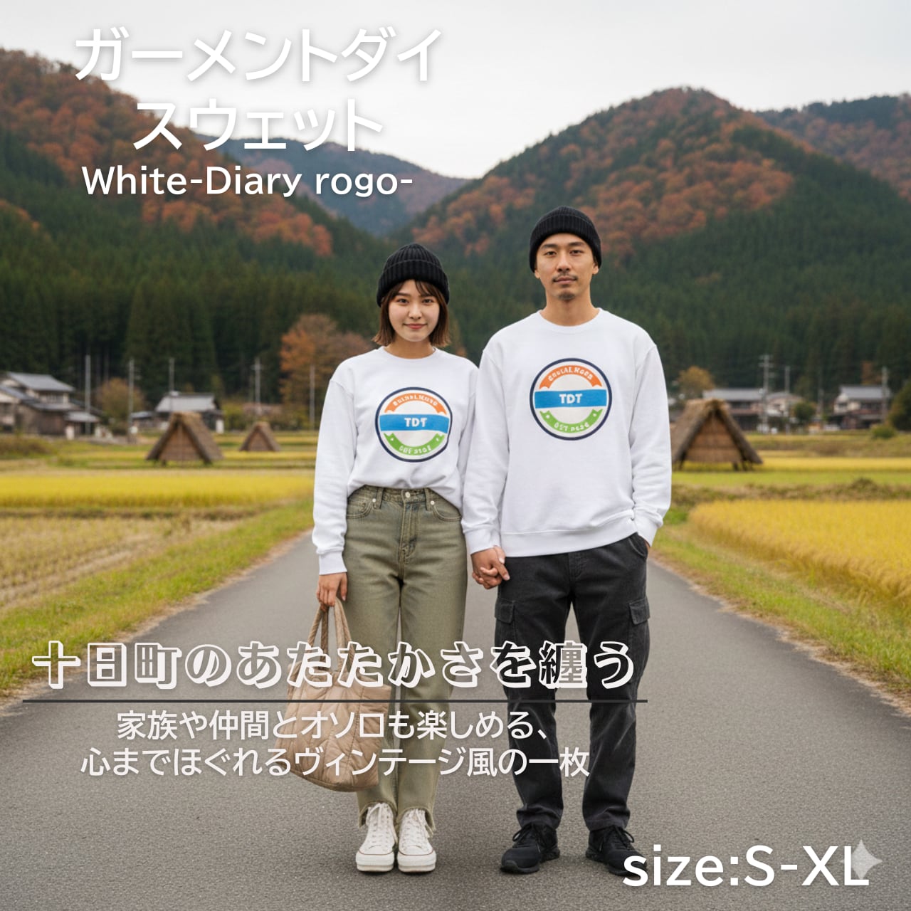 TDT【Diaryロゴプリント】ガーメントダイ スウェット ホワイト