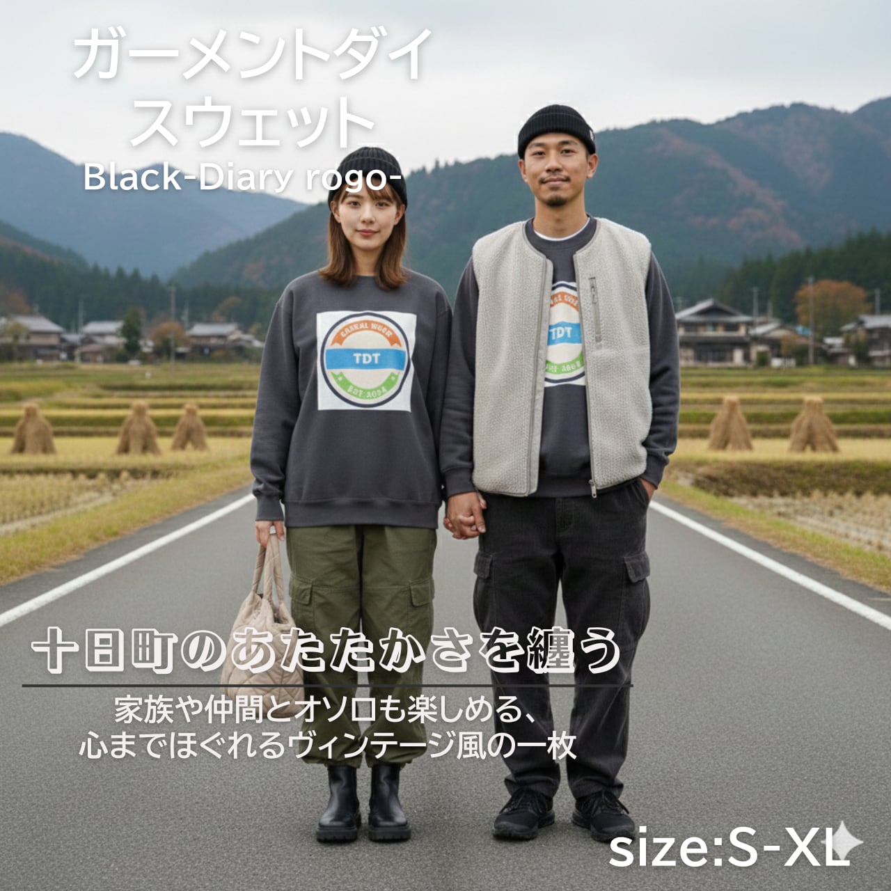TDT【Diaryロゴプリント】ガーメントダイ スウェット ブラック