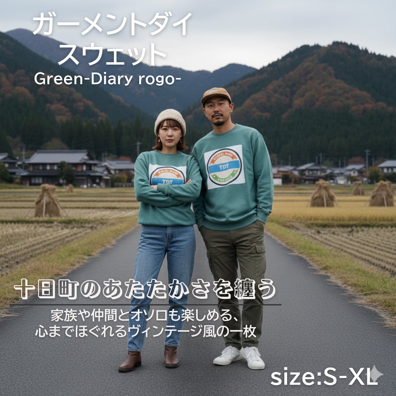 TDT【Diaryロゴプリント】ガーメントダイ スウェット グリーン