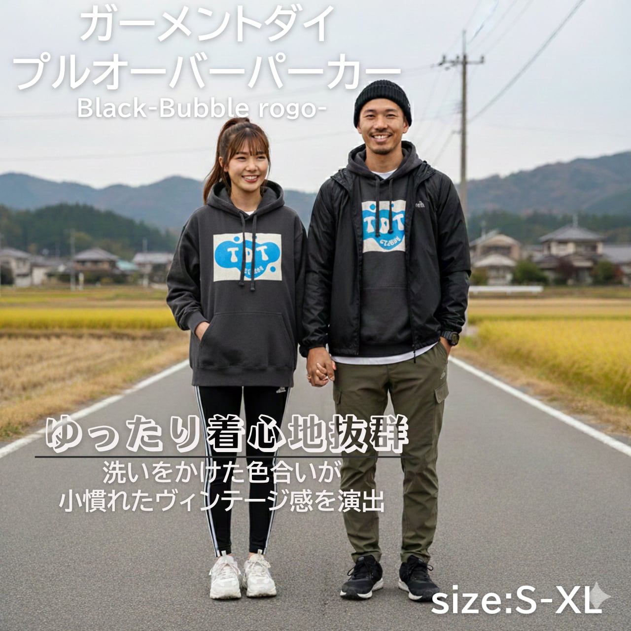 TDT【Bubbleロゴプリント】ガーメントダイ プルオーバーパーカー ブラック