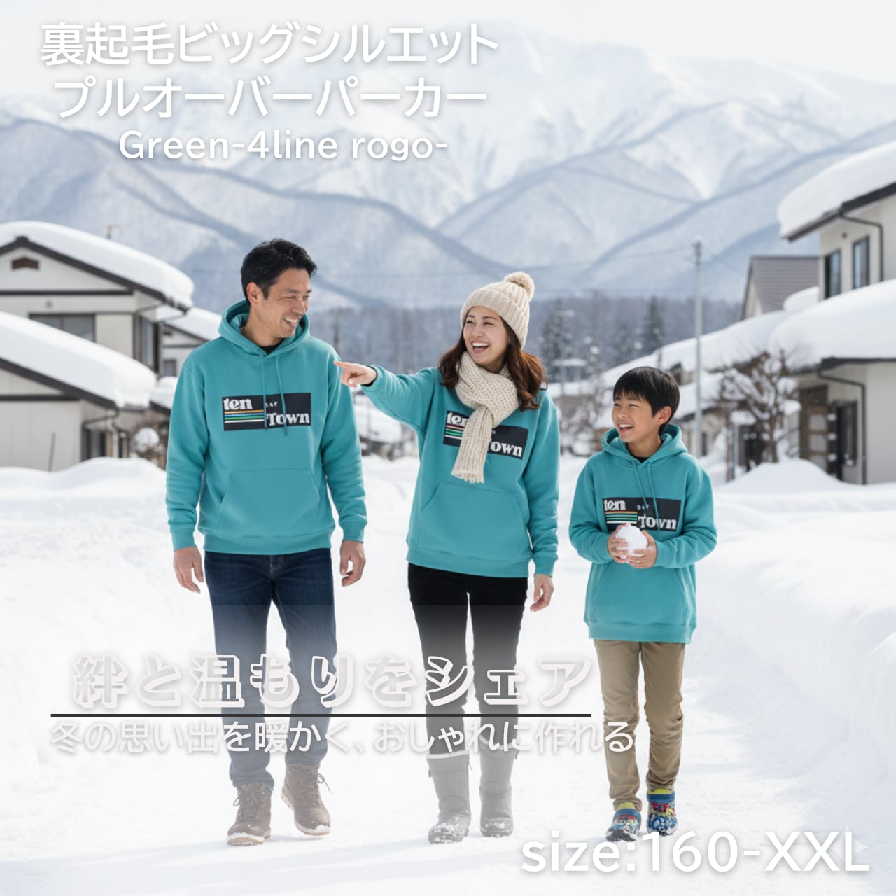 TDT【4lineロゴプリント】裏起毛 ビックシルエットプルオーバーパーカー グリーン