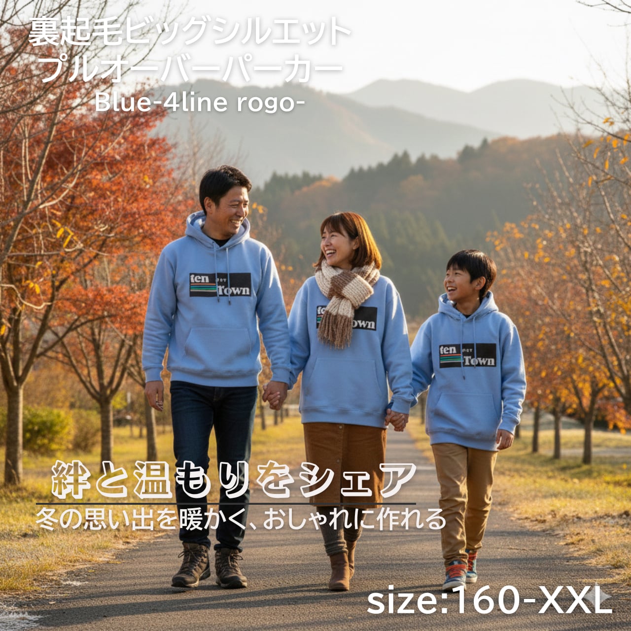 TDT【4lineロゴプリント】裏起毛 ビックシルエットプルオーバーパーカー ブルー