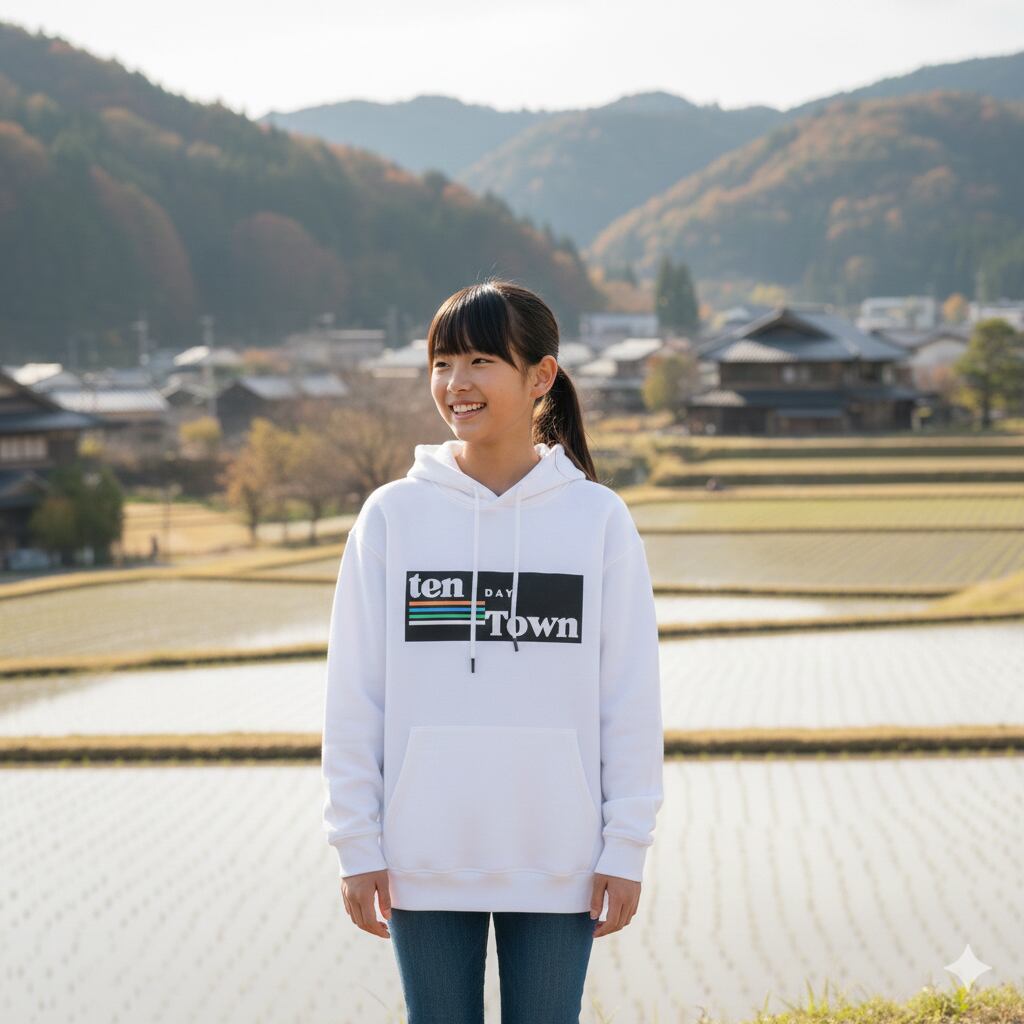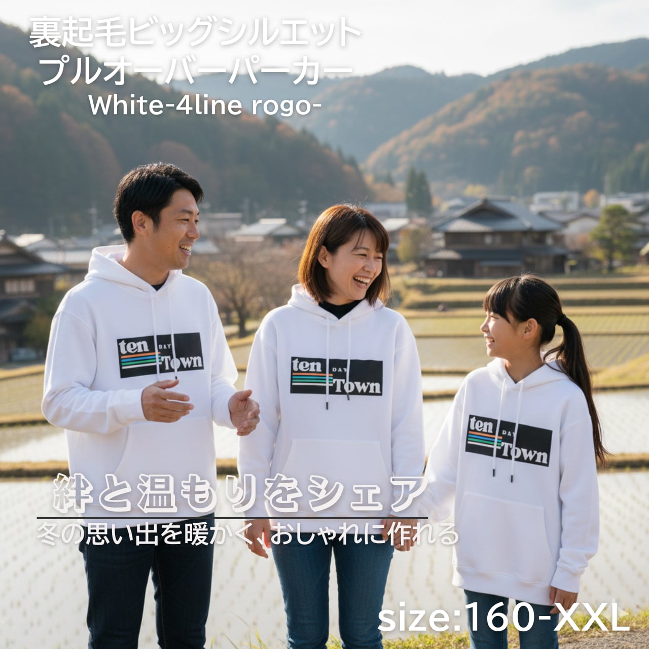 TDT【4lineロゴプリント】裏起毛 ビックシルエットプルオーバーパーカー ホワイト