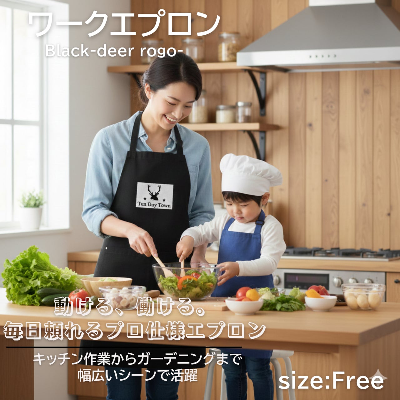 TDT【deerロゴプリント】ワークエプロン ブラック