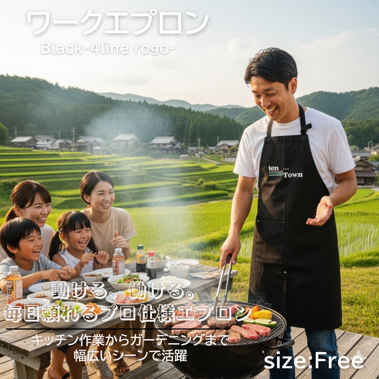 TDT【4lineロゴプリント】ワークエプロン ブラック