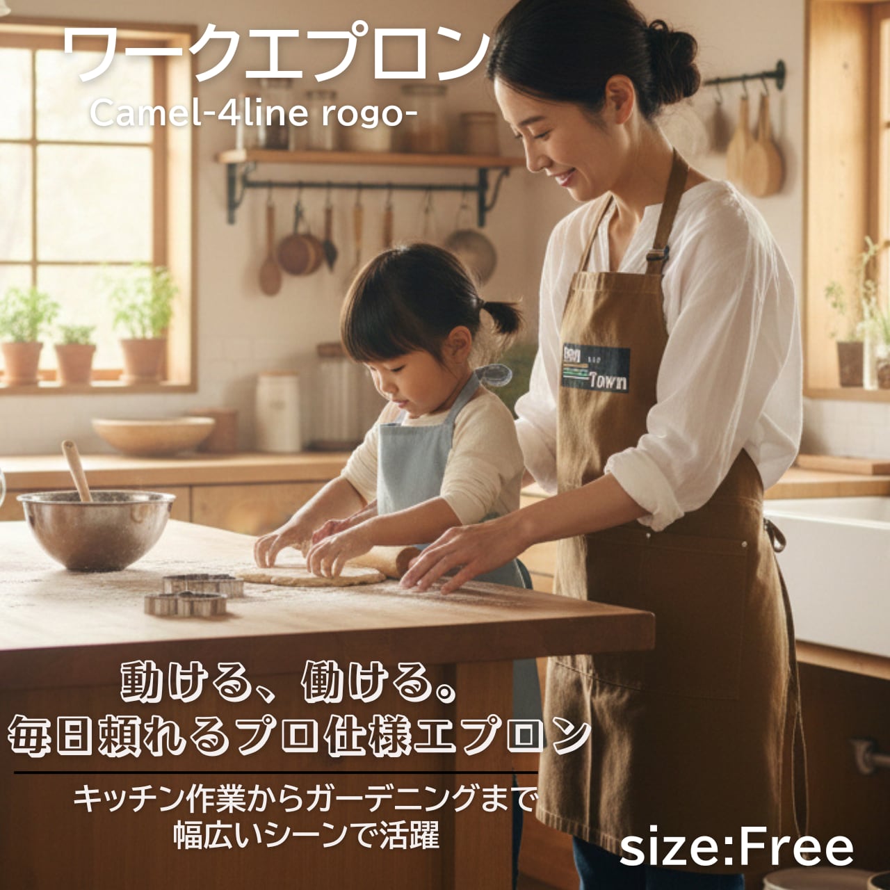 TDT【4lineロゴプリント】ワークエプロン キャメル