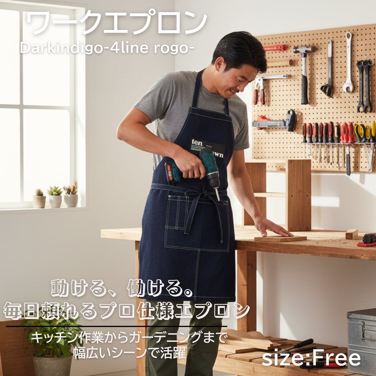 TDT【4lineロゴプリント】ワークエプロン ダークインディゴ