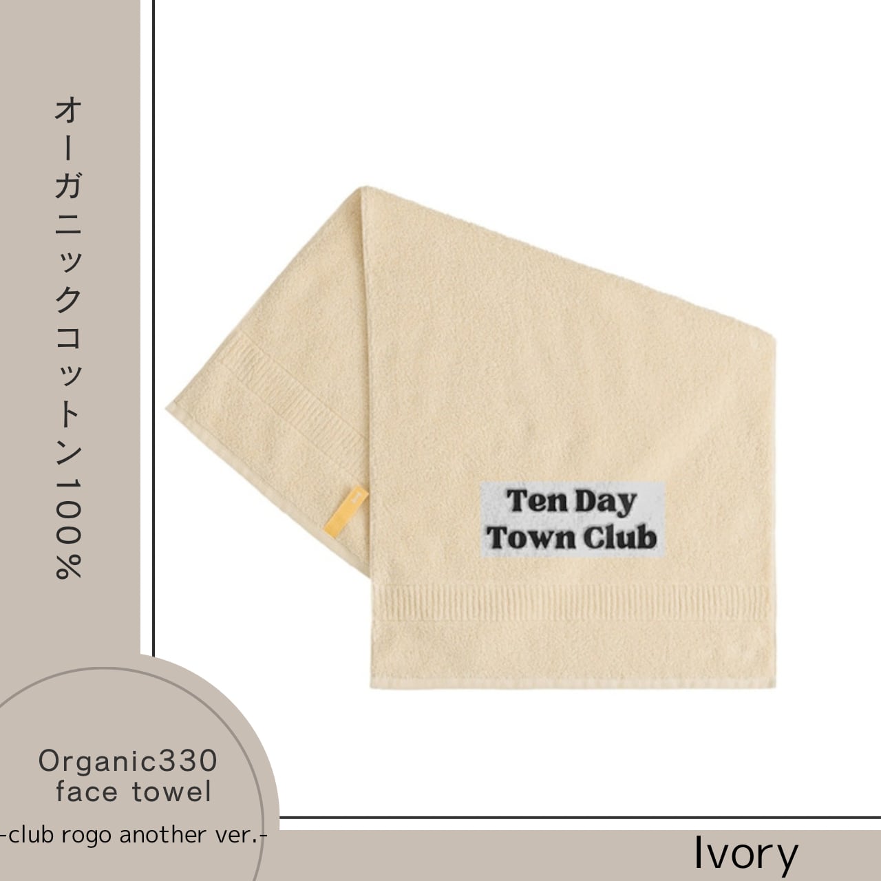 TDT【clubロゴ刺繍 another ver.】オーガニック330 フェイスタオル アイボリー