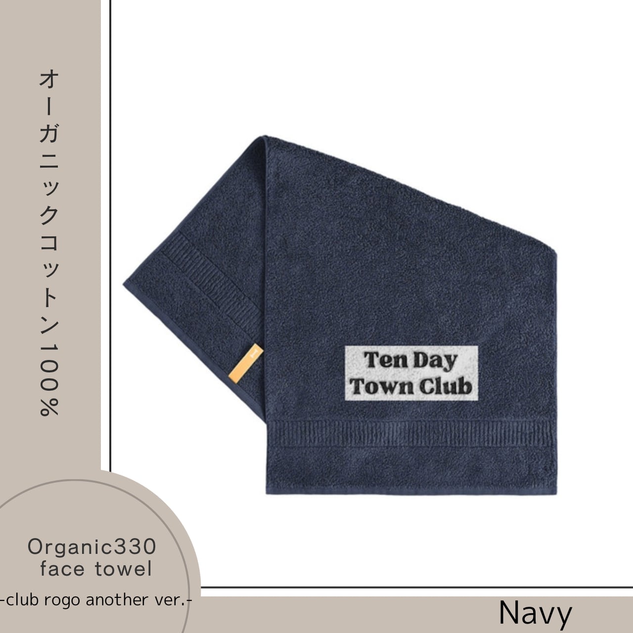 TDT【clubロゴ刺繍 another ver.】オーガニック330 フェイスタオル ネイビー