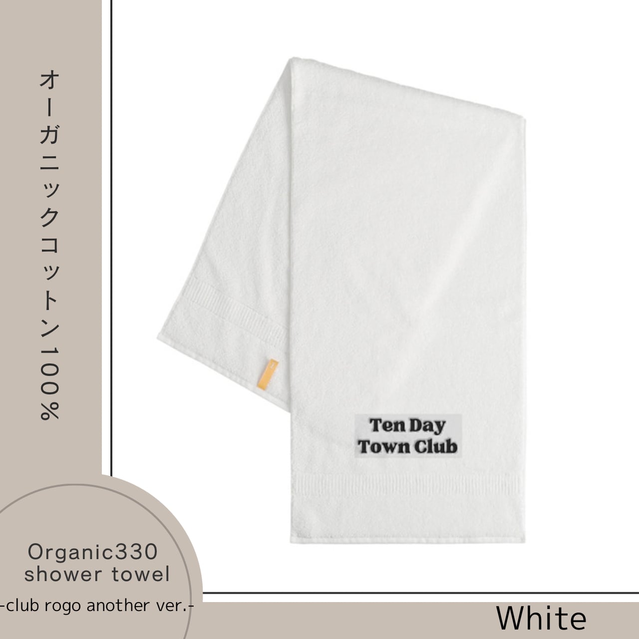 TDT【clubロゴ刺繍 another ver.】オーガニック330 シャワータオル ホワイト