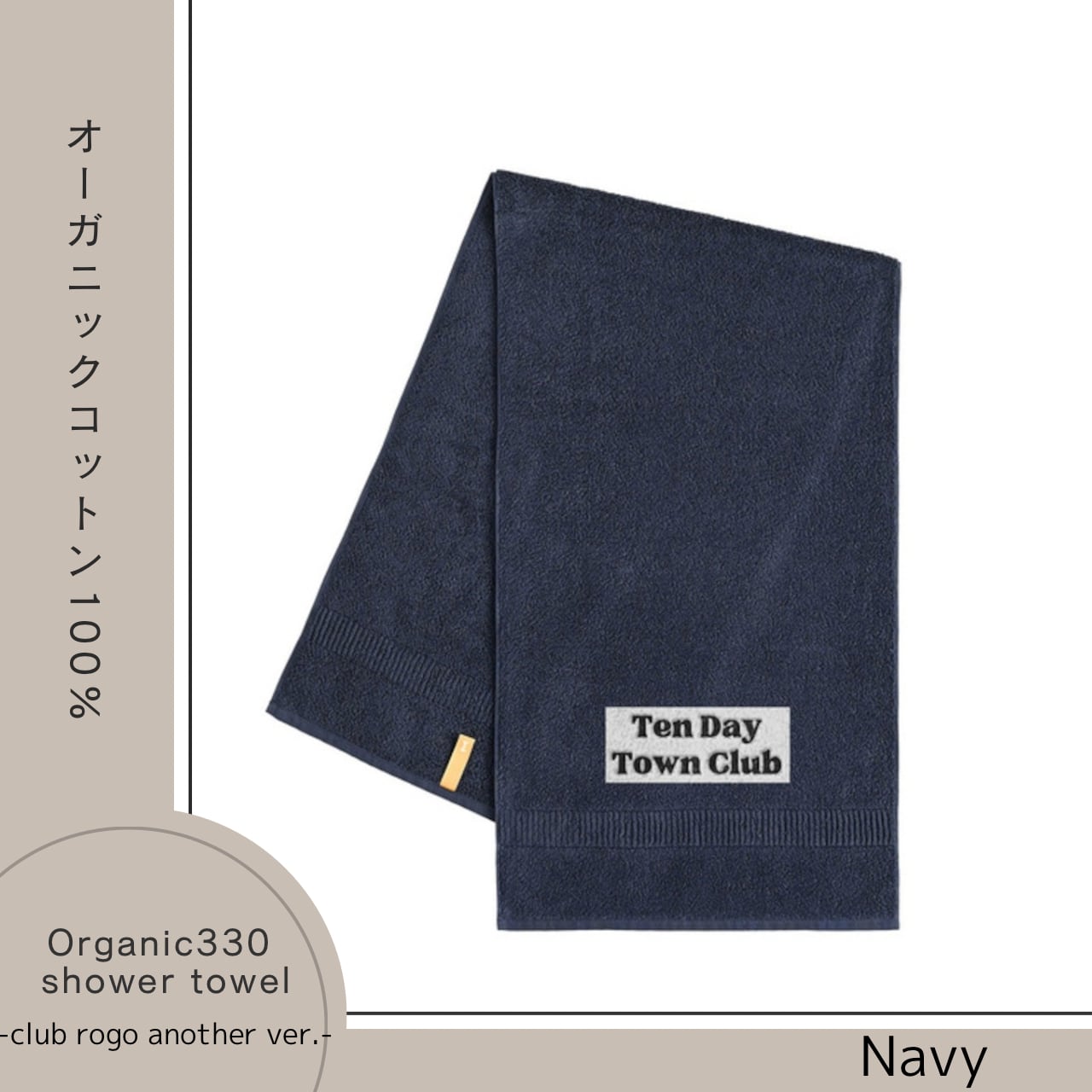 TDT【clubロゴ刺繍 another ver.】オーガニック330 シャワータオル ネイビー