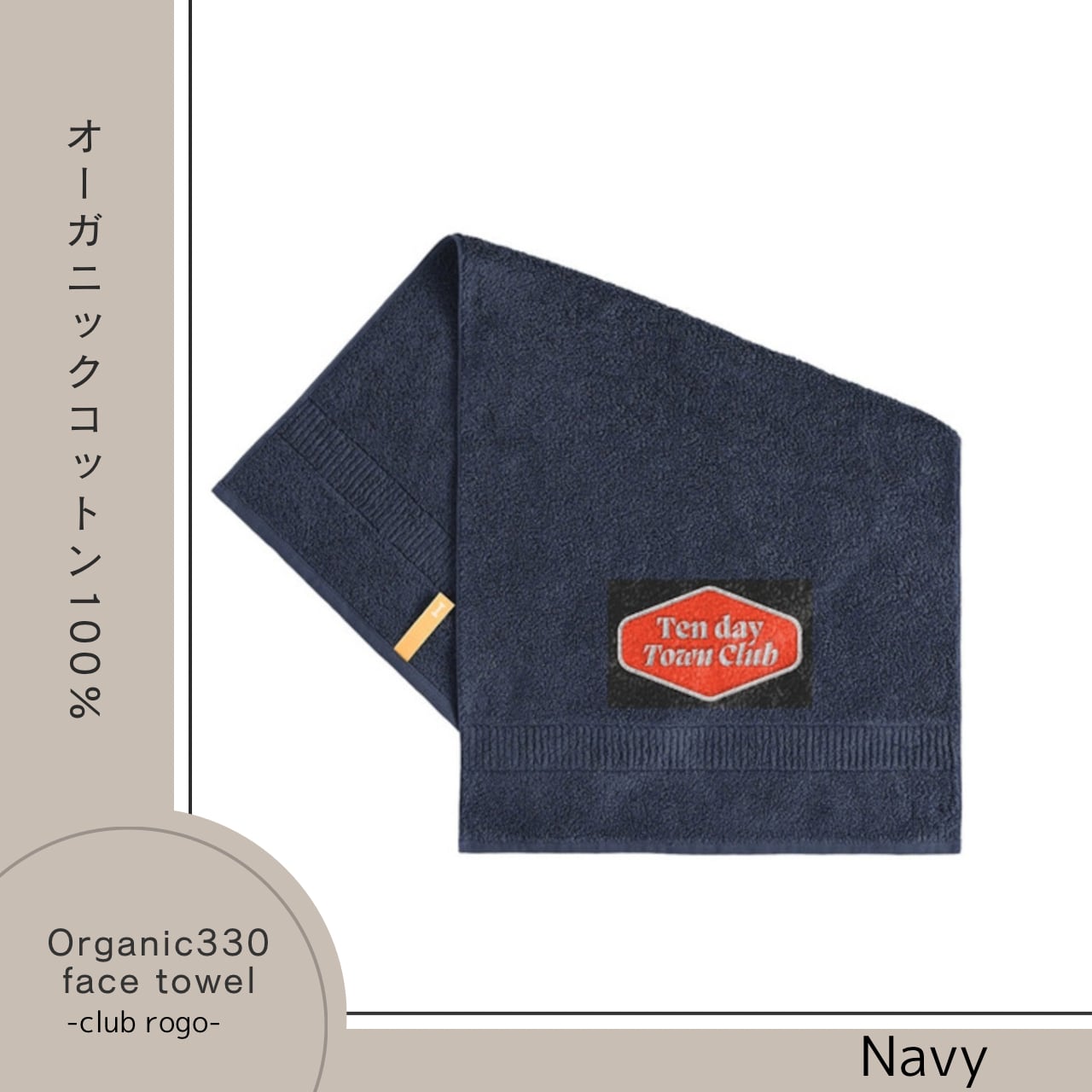 TDT【clubロゴ刺繍】オーガニック330 フェイスタオル ネイビー