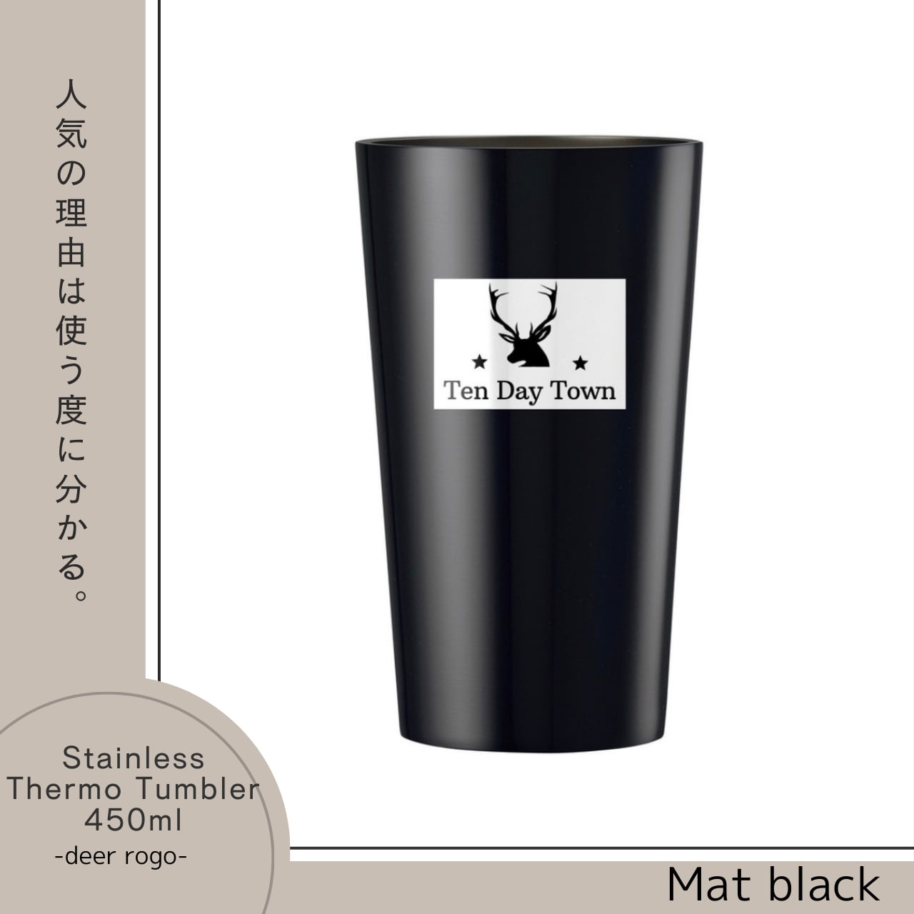 TDT【deerロゴプリント】ステンレスサーモタンブラー 450ml マットブラック