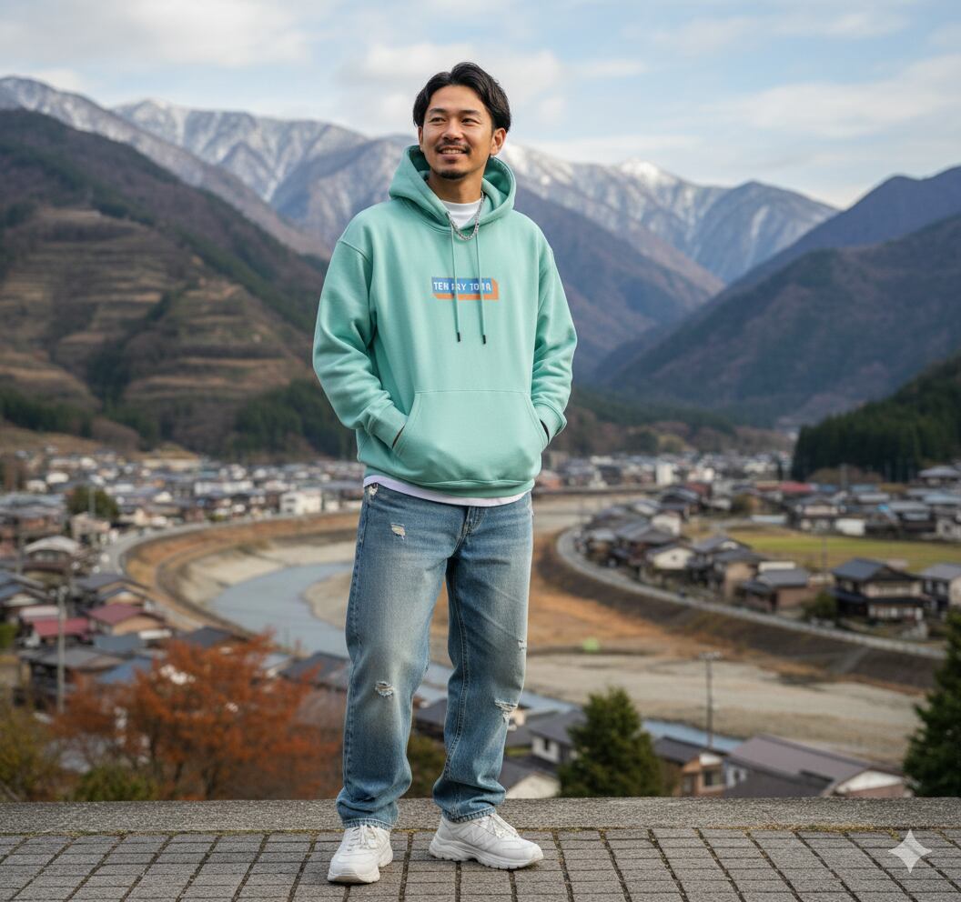 11.6オンスの裏起毛ビッグシルエットパーカー。