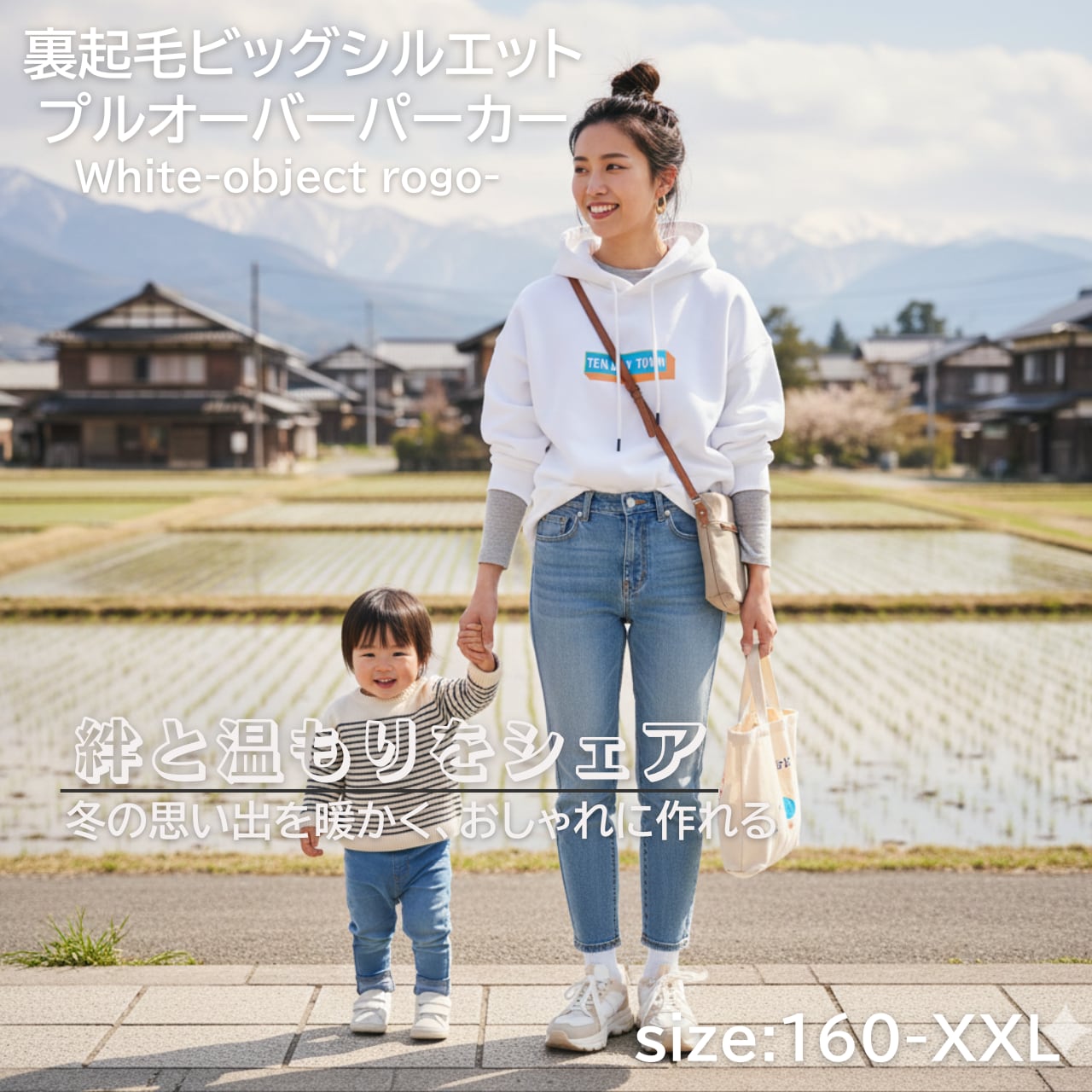 TDT【objectロゴプリント】裏起毛 ビックシルエットプルオーバーパーカー ホワイト