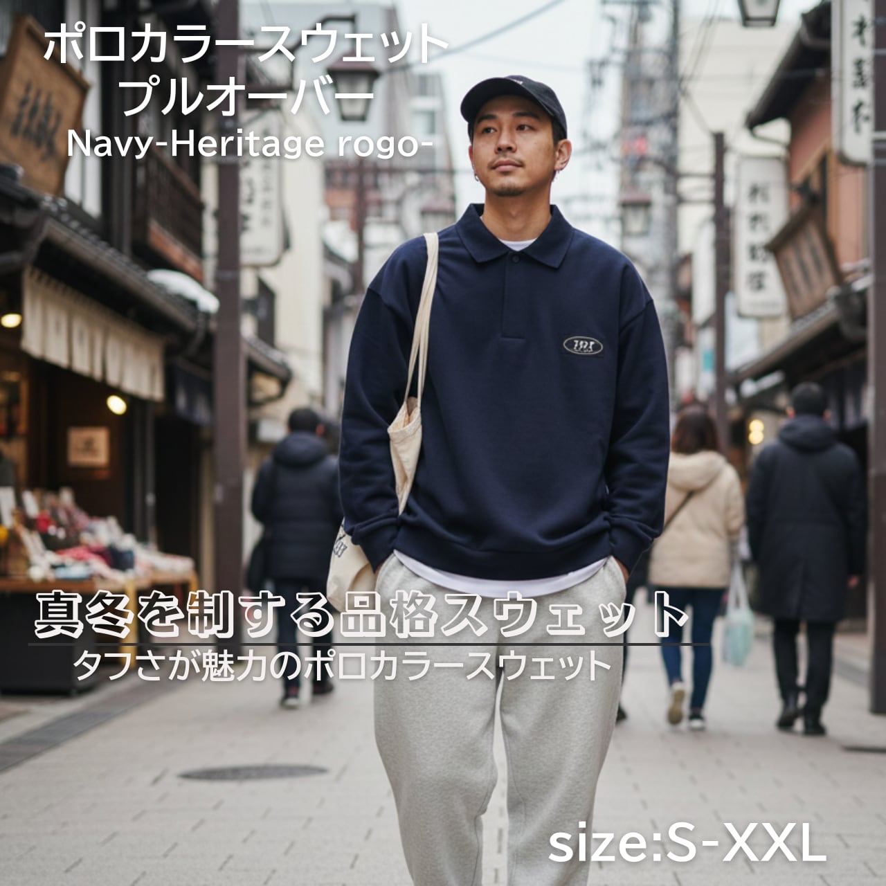 TDT【Heritageロゴプリント】ポロカラースウェットプルオーバー ネイビー