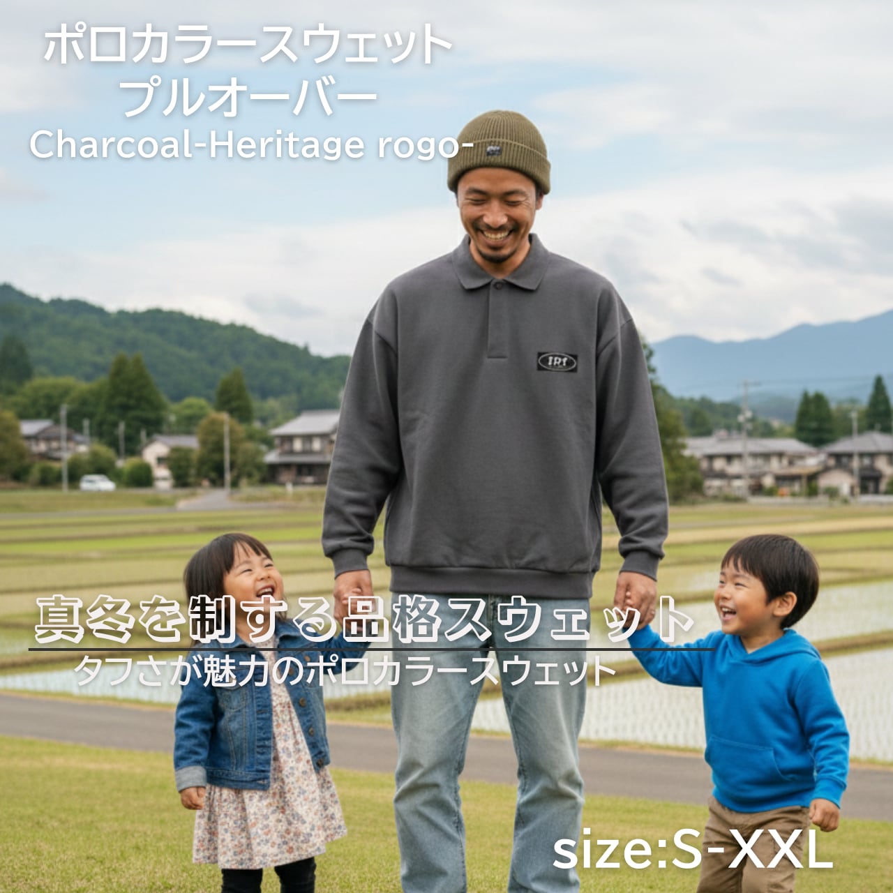 TDT【Heritageロゴプリント】ポロカラースウェットプルオーバー チャコール