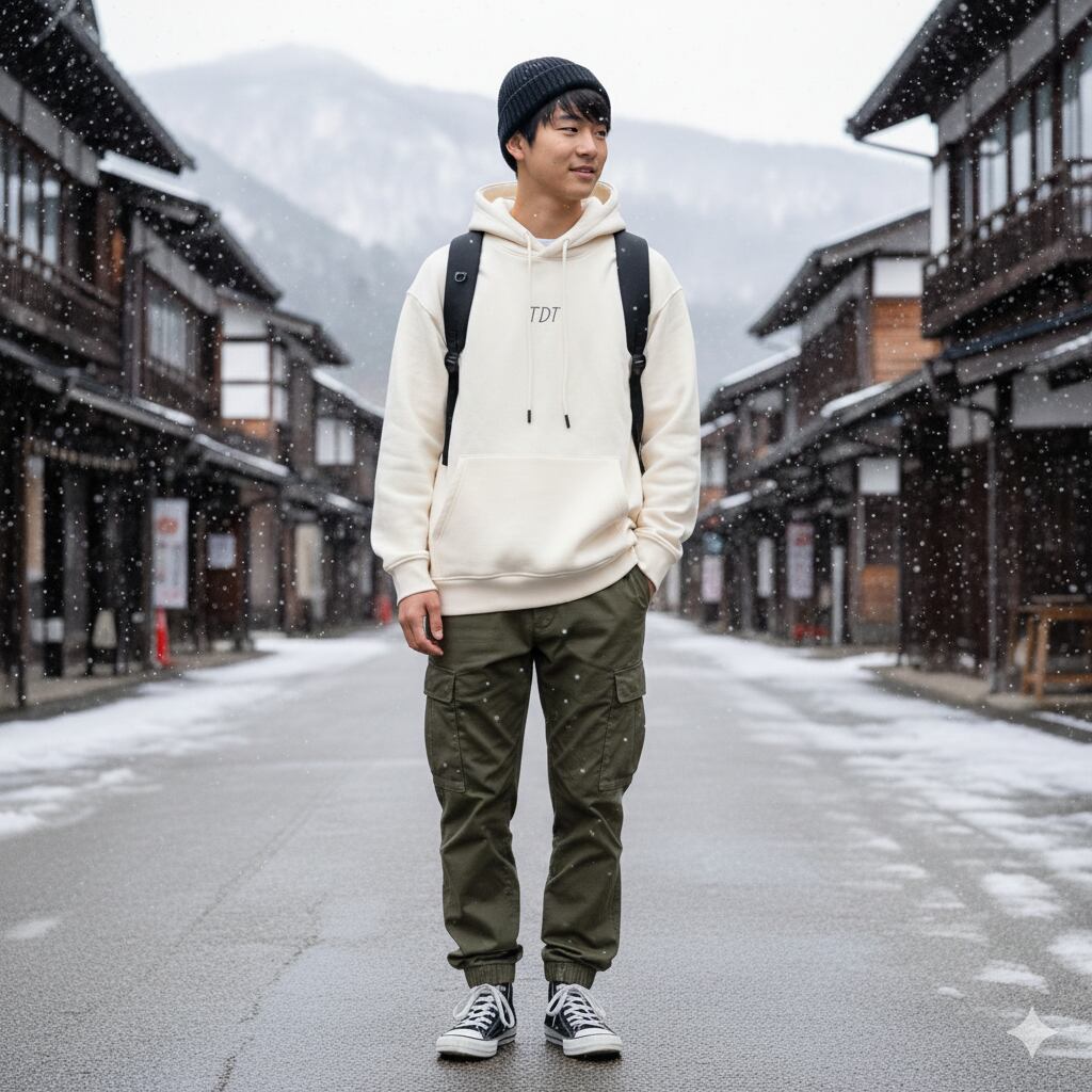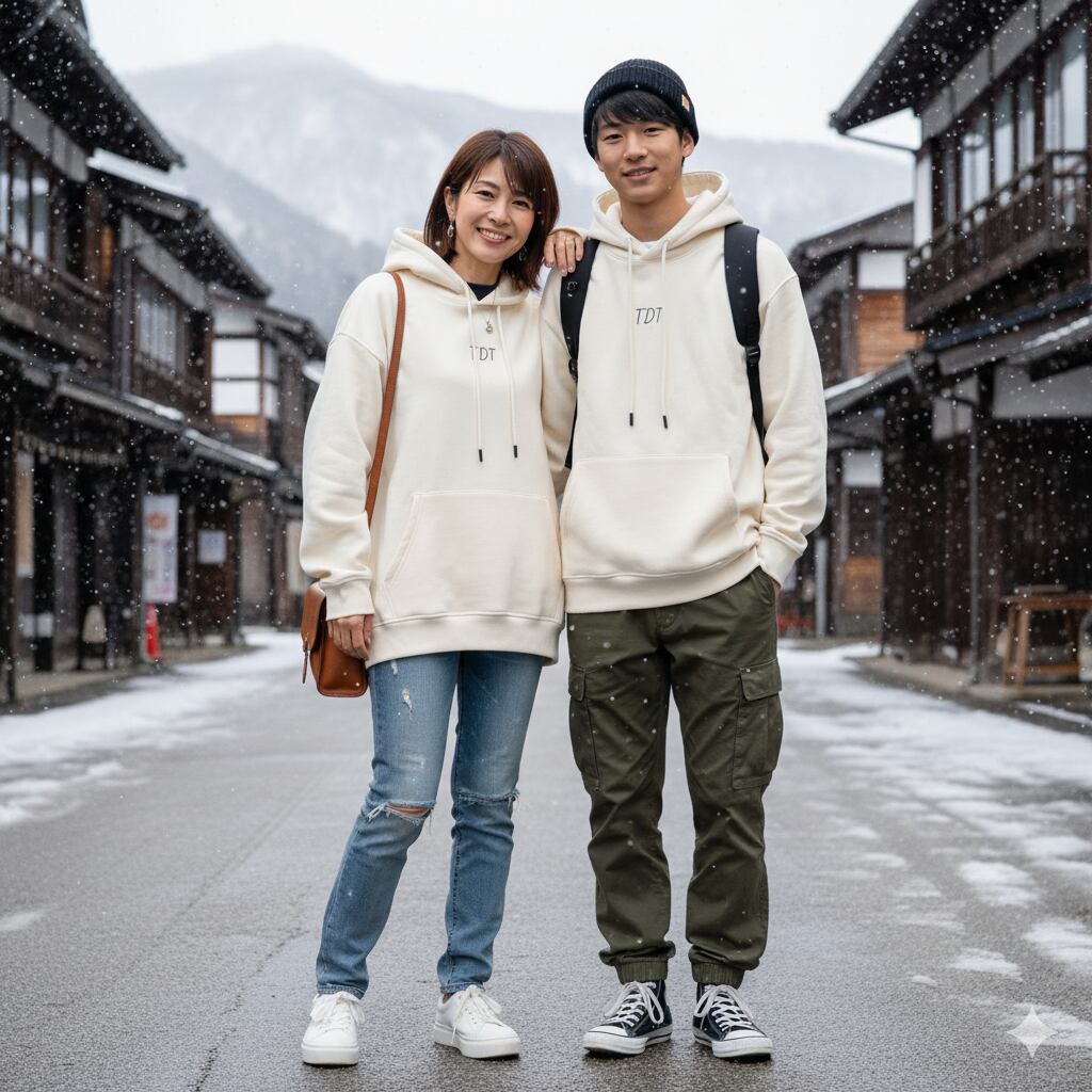 TDT【TDT刺繡】裏起毛 ビックシルエットプルオーバーパーカー アイボリー
