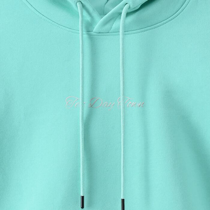 TDT【Ten Day Town刺繡】裏起毛 ビックシルエットプルオーバーパーカー エメラルドグリーン
