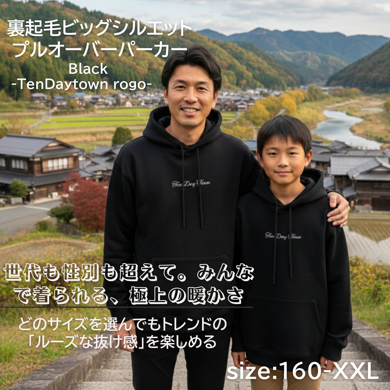 TDT【Ten Day Town刺繡】裏起毛 ビックシルエットプルオーバーパーカー ブラック