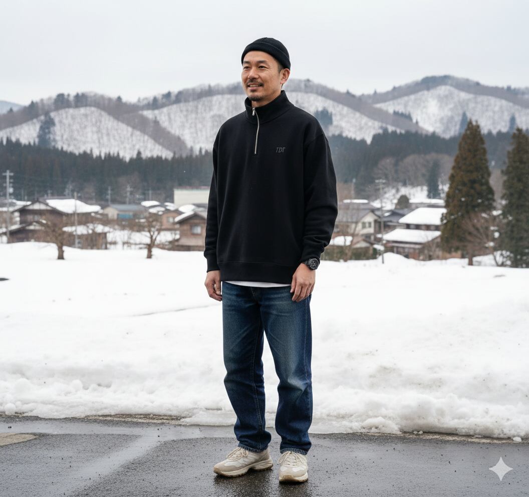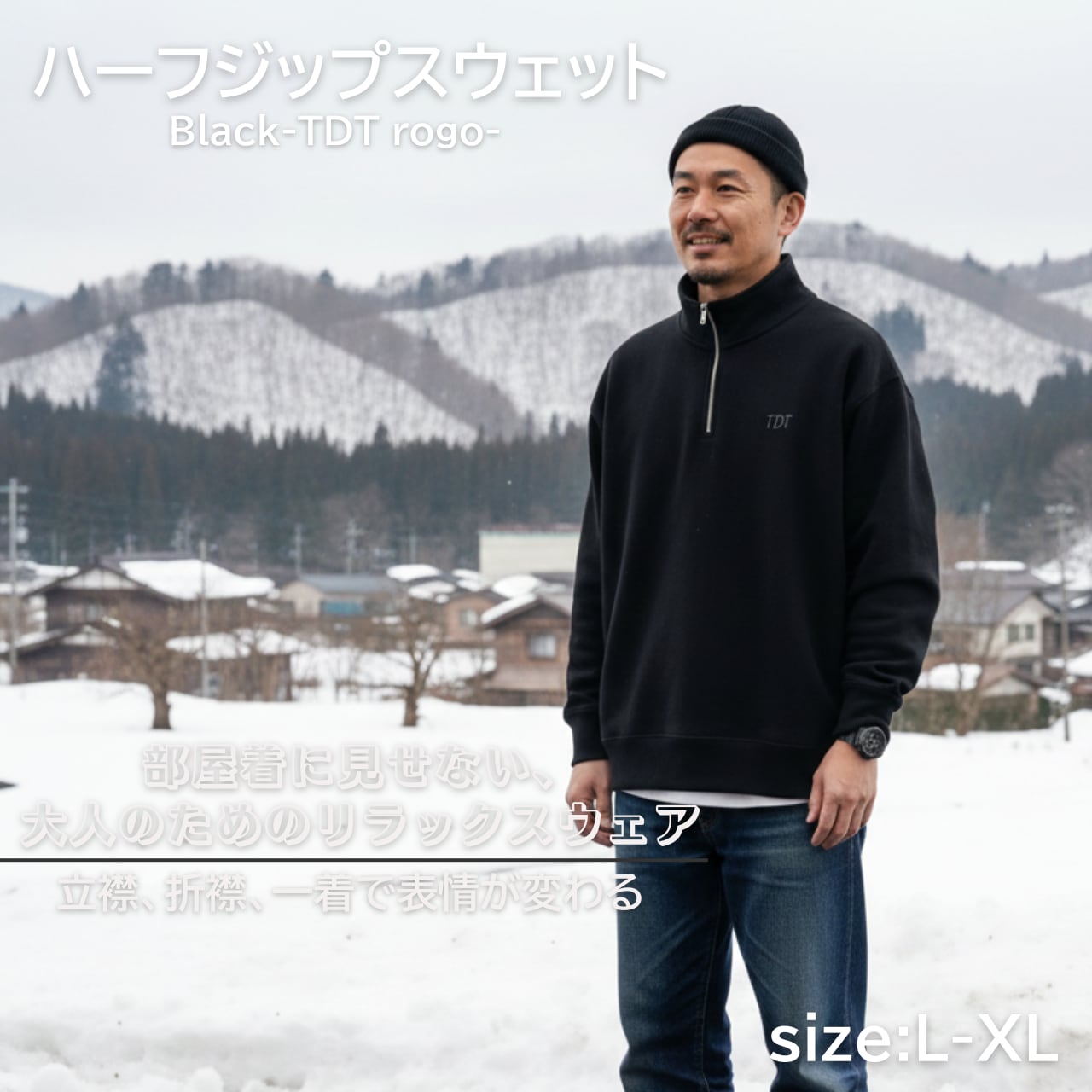 TDT【TDT刺繡】ハーフジップスウェット ブラック