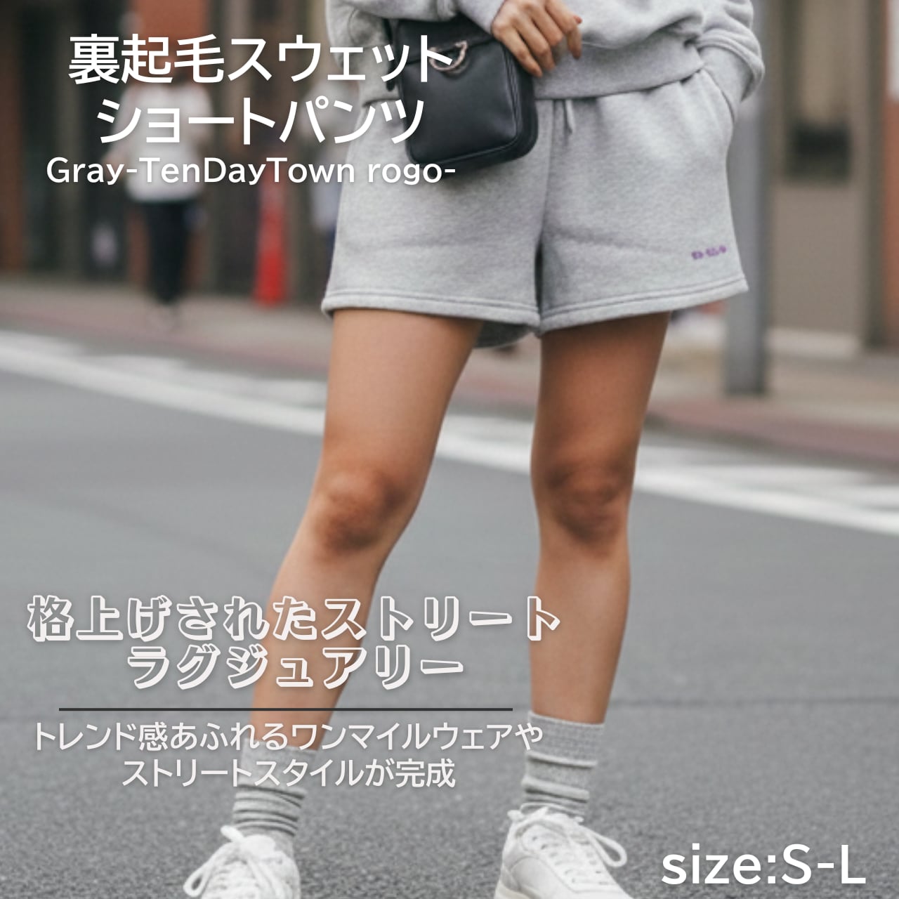 TDT【Ten Day Town刺繍】裏起毛スウェットショートパンツ グレー